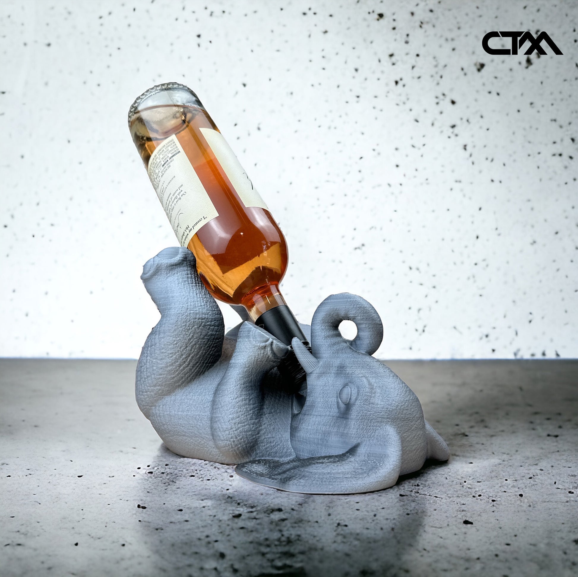 Bring a unique style to your favorite space with a stunning Elephant Wine Bottle Holder! This functional and beautiful decor piece is sure to be a conversation starter. Each Elephant is crafted with care and precision; 3D printed with high-quality, plant-based PLA with the highest quality settings on the highest quality printers. This wine holder is not only visually captivating but also reliably sturdy, ensuring your wine bottle is securely supported.